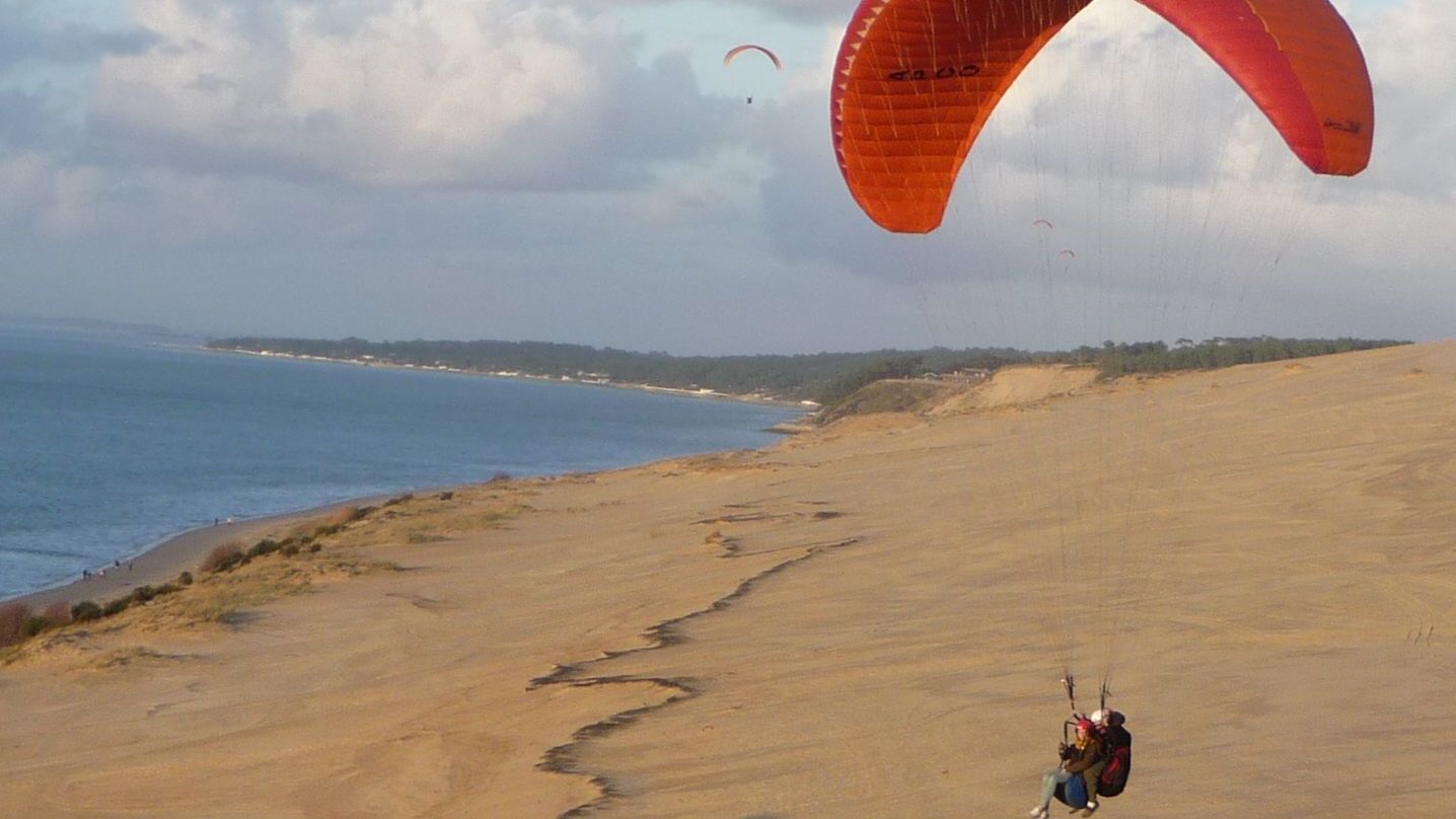 Vivez un anniversaire unique, en choisissant une activité sensationnelle, avec un baptême en parapente au départ du sommet de la Dune du Pilat. Après avoir rejoint votre moniteur qualifié, prenez connaissance des règles de sécurité, et laissez-vous emporter par le vent en survolant le sable le temps d’une balade d’environ 30 minutes. Avec la mer d’un côté et la forêt de pins de l’autre, profitez du panorama exceptionnel qu’offre la région, avant de vivre quelques manœuvres pleines d’adrénaline, et de retrouver le plancher des vaches.
